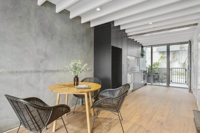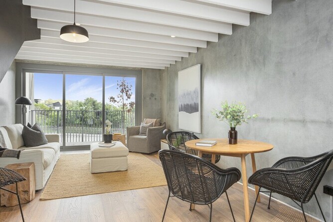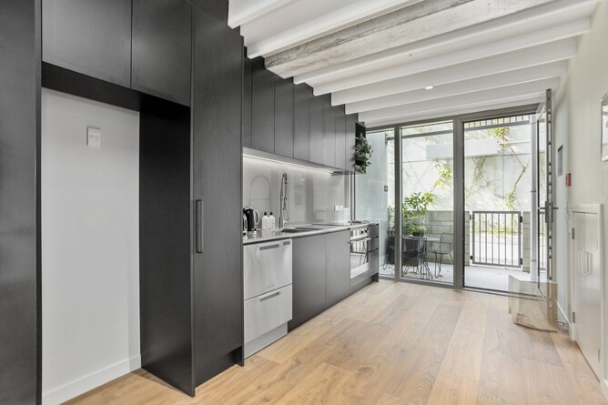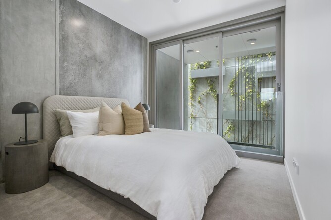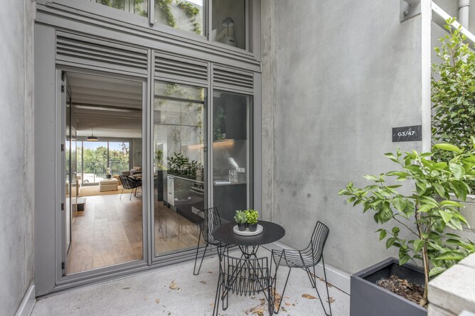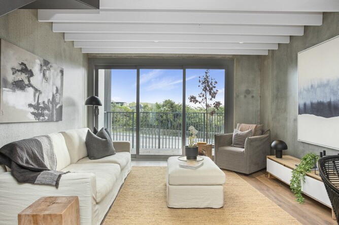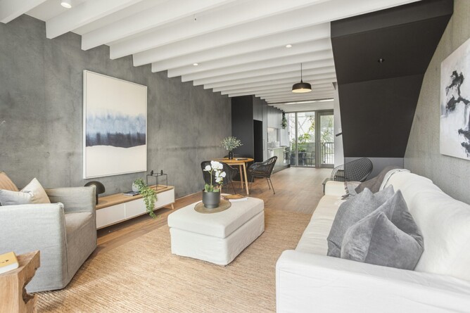 Townhouse 107 (153m2) is a family sized inner-city pad perfectly positioned on the Northern side of Union Green. Enter through your own walled courtyard, admire the perfectly crafted interiors, sleek European kitchen with stainless benchtop island, concrete feature walls, exposed beams, and wide plank timber floors all flowing out to your private covered lanai. All day sun from this covered vantage point. In addition, there are 3 light and airy bedrooms, 2 full bathrooms including an en-suite and secure car stacker for two cars.